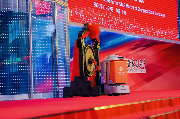 10月29日,九號有限公司(689009)首次公開發行存托憑證并在科創板正式上市,發行價格18.94元/份,開盤大漲74.23%,截至10:25,股價直達38元/股,漲幅超過100%,市值迅速沖破268億元。值得注意的是,九號公司獨出心裁地選擇用自家研發的機器人上臺鳴鑼,開創了A股市場機器人鳴鑼上市先河。
