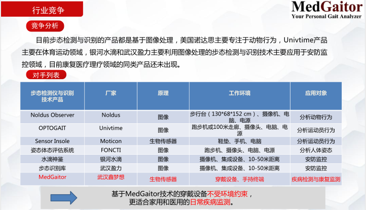 武漢永飛弘信息科技有限公司(以下簡(jiǎn)稱“永飛弘”)推出的“穿戴型中風(fēng)患者步態(tài)檢測(cè)儀”,是一種基于模式識(shí)別與人工智能的穿戴式醫(yī)療器械。通過(guò)對(duì)被測(cè)試者日常行走進(jìn)行監(jiān)測(cè),針對(duì)可能存在腦卒中(又稱中風(fēng))等慢性疾病的潛在風(fēng)險(xiǎn)進(jìn)行評(píng)估,對(duì)已經(jīng)診斷病變患者的康復(fù)治療進(jìn)行監(jiān)測(cè)評(píng)估。目前,康復(fù)醫(yī)療領(lǐng)域尚未有同類產(chǎn)品出現(xiàn),永飛弘成功搶占了市場(chǎng)先機(jī)。