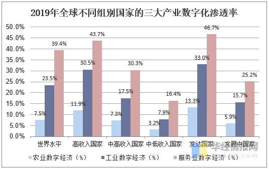 據統計,發達國家的工業數字經濟比例平均達到33.0%,明顯高于發展中國家的15.7%。發展中國家未來的工業、制造業的數字化進程有望帶來更多流程工業相關的建設投入機會。中國第二產業的數字經濟滲透率2019年僅為19.5%,明顯低于第三產業的37.8%。