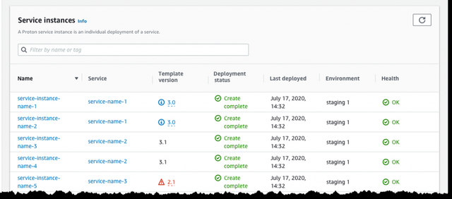 AWS Proton會收集有關(guān)應(yīng)用程序部署的狀態(tài)信息,像是成功部署的最後日期等。基礎(chǔ)設(shè)施團隊可以透過更新模板,來更新執(zhí)進程序碼的基礎(chǔ)設(shè)施,當模板更新後,基礎(chǔ)設(shè)施團隊可以從AWS Proton上,看到以舊版本模板執(zhí)行的應(yīng)用程序,并進行升級,在升級過程,AWS Proton會持續(xù)監(jiān)控應(yīng)用程序的執(zhí)行狀況,并在出現(xiàn)問題時,回退到前一個版本。