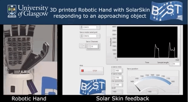 為了演示他們的概念,研究人員將一個普通的 3D 打印機器人手包裹在他們的太陽能皮膚中,然后記錄下它與周圍環境的互動。