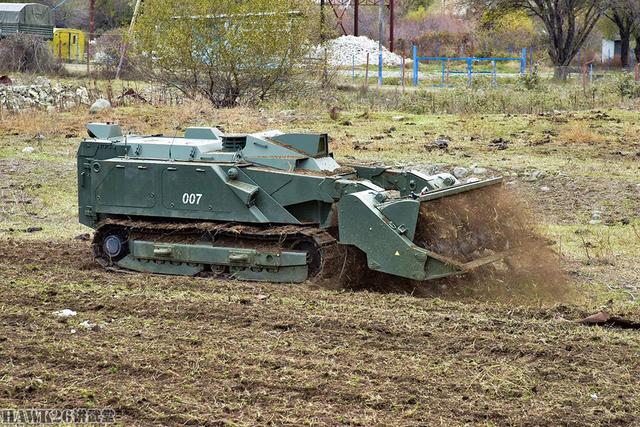 “烏蘭6”通過(guò)自身動(dòng)力開進(jìn)雷場(chǎng)。