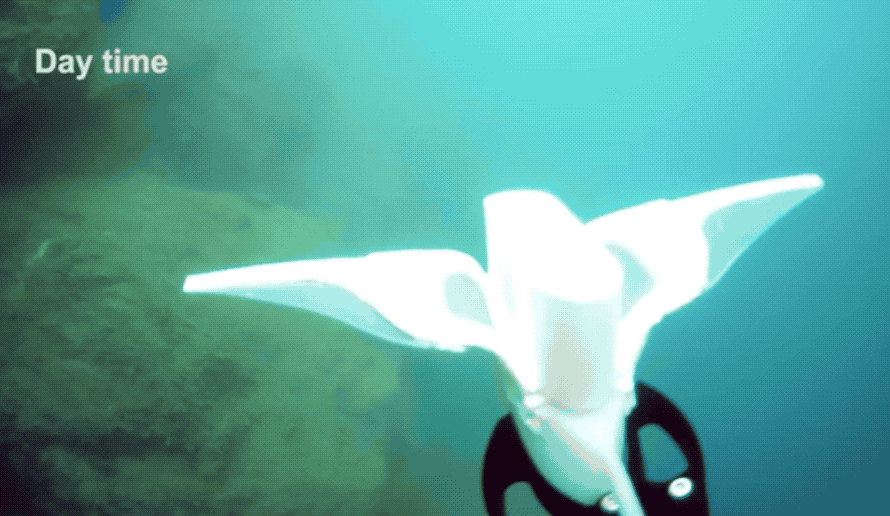 圖|在 10900 米深的馬里亞納海溝中,軟體機器人的雙鰭拍打動作(來源:Nature)